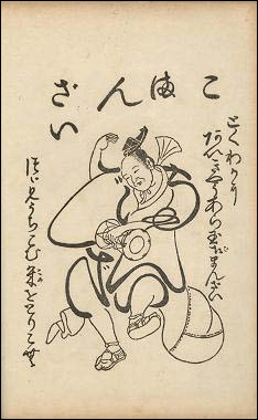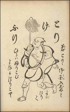 ■江戸時代の寺子屋等で子供たちに文字を教える手習の教材として、活用されていました。 文字が浮世絵の中に隠された「隠し文字」として描かれているのが特徴です。 文字を探す遊びを通すことによって子供たちが文字に興味を持ち、文字を形として覚えたとされています。 写真資料は北風麗山が昭和4年に二百年余を経た教本を復刻したものです。 北風麗山は子供の頃に仏道に入ろうと決意し、小僧時代の手習の手本である文字絵を学んだとされています。